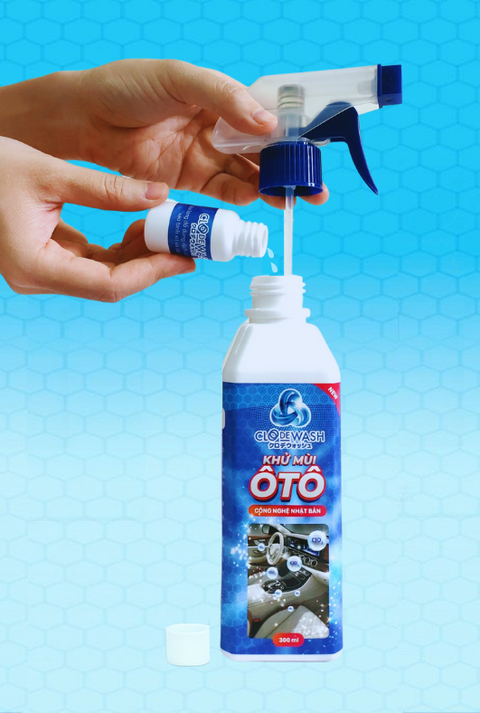 - Sản phẩm Chai xịt khử mùi ô tô Công nghệ Nhật Bản CLODEWASH của chúng tôi hoạt động dựa vào cơ chế sản sinh ra khí Clo dioxide (ClO2)